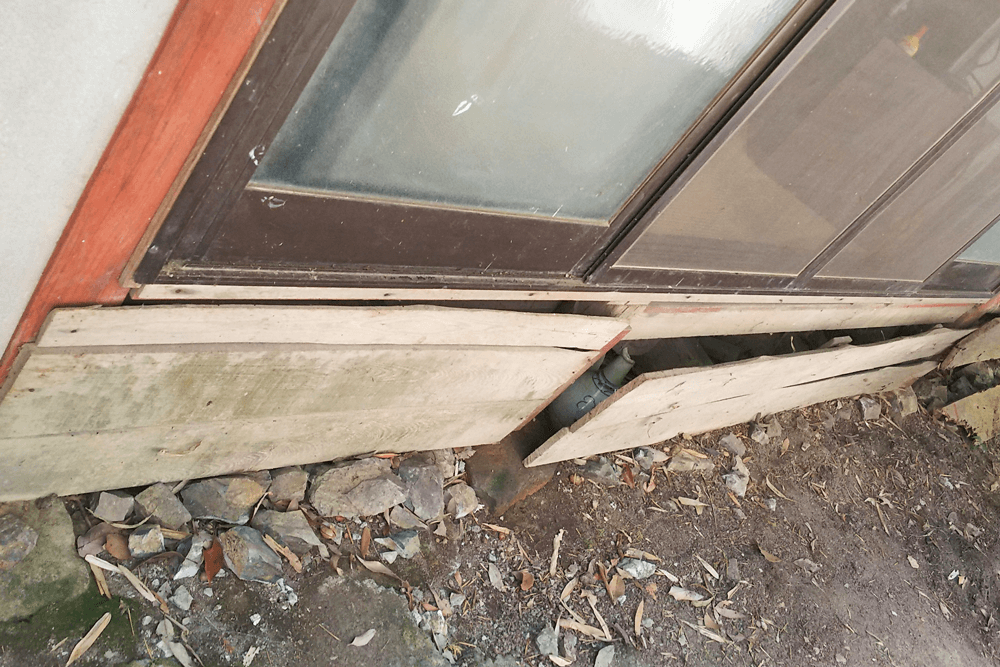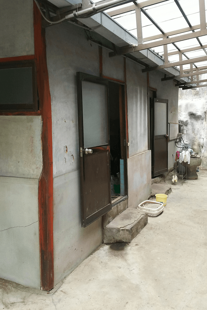 壁が剥がれたり、ヒビが入っていたりして、全体的に古い印象の外観が…