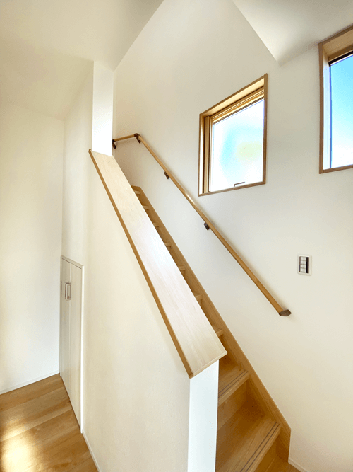 入ってすぐの階段には、手すりをつけて安全に!