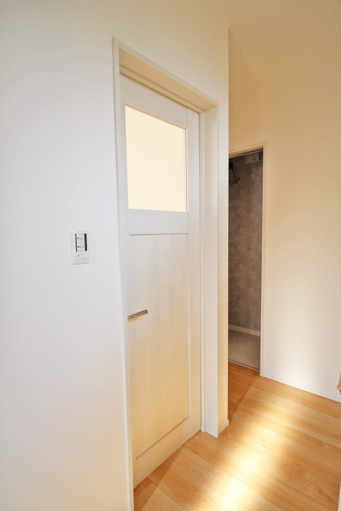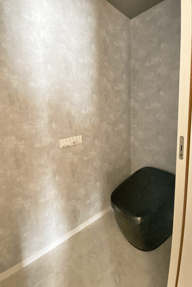 トイレは、壁に合わせて落ち着いた雰囲気に。