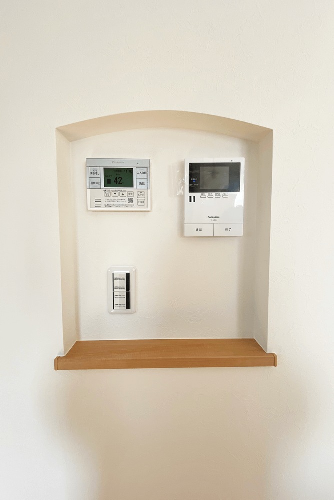 操作パネルをまとめたニッチの形に合わせて、パントリーの入口がアーチ型になっているのもこだわりです♪