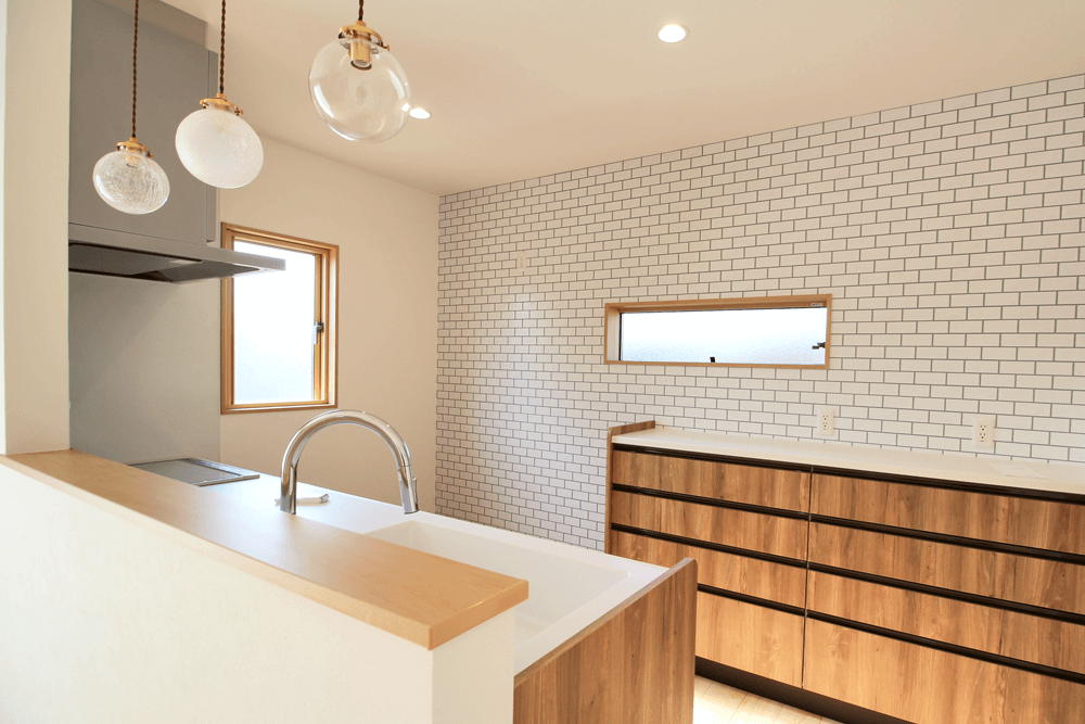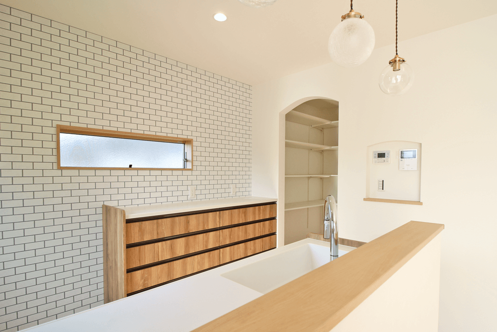 キッチンは、白い壁と木目で温かな印象に。