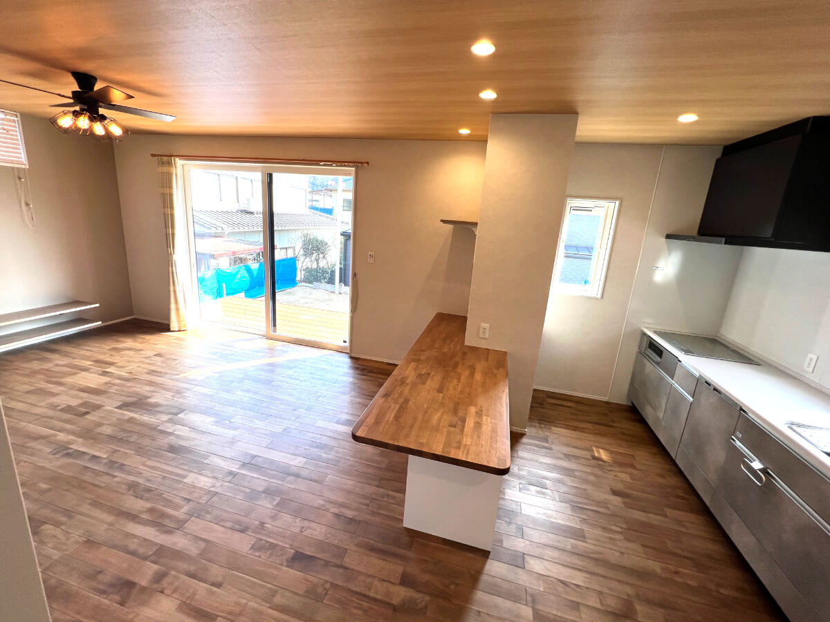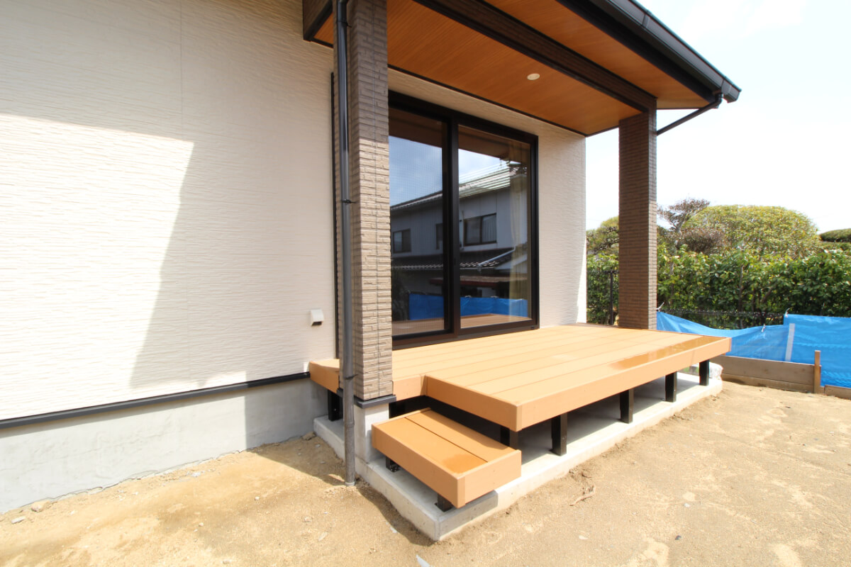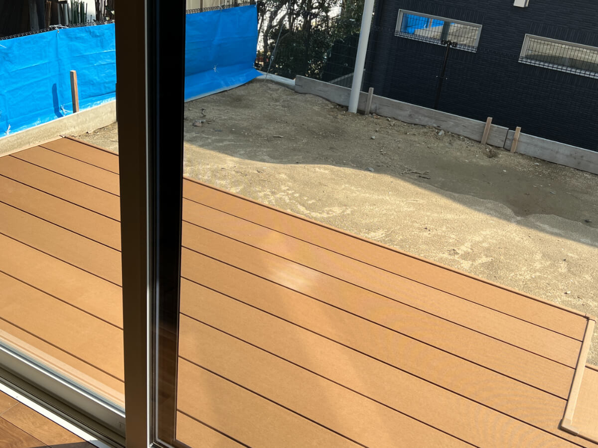 庭へと続く窓の外には、ウッドデッキを設置しました。