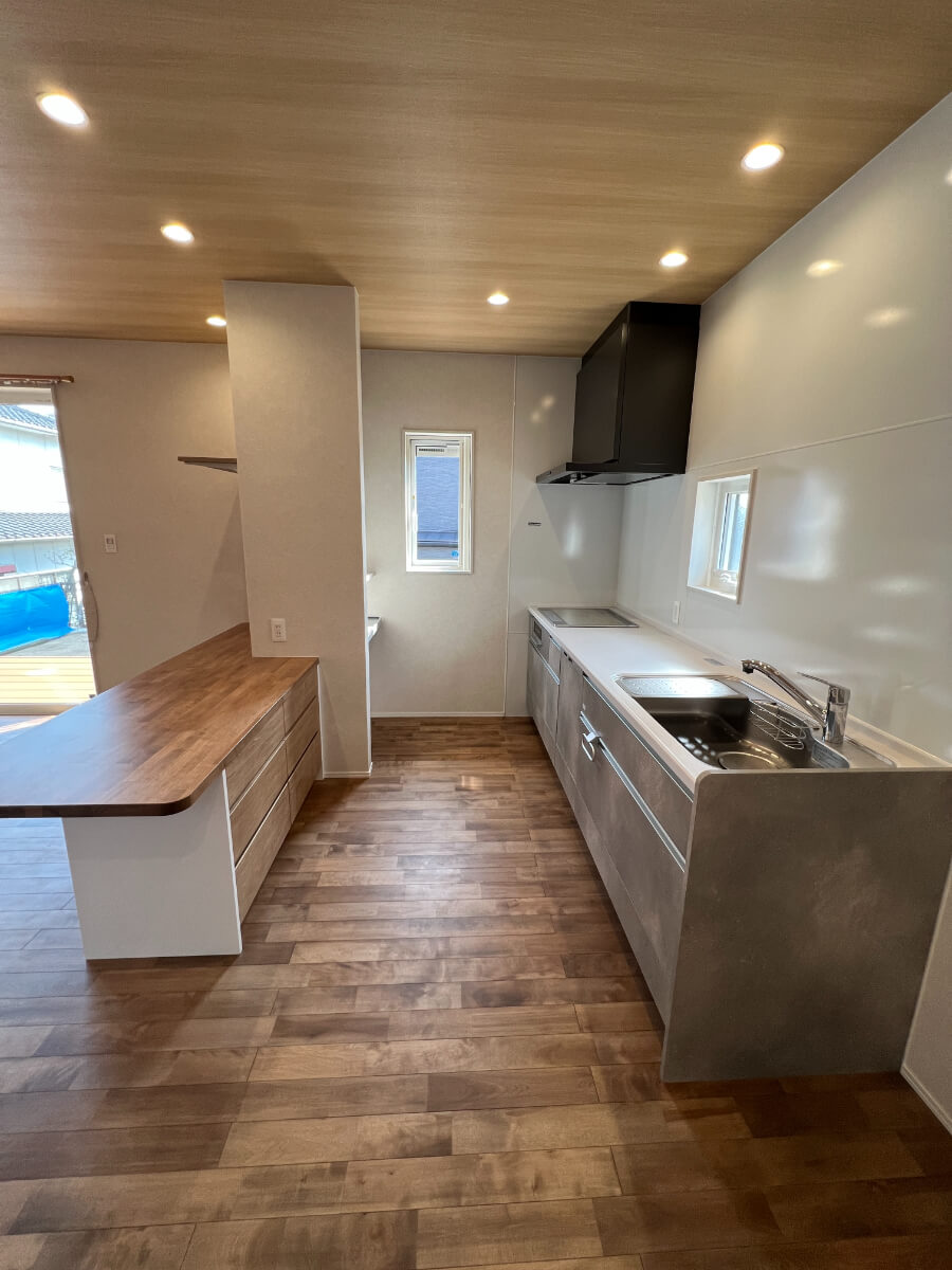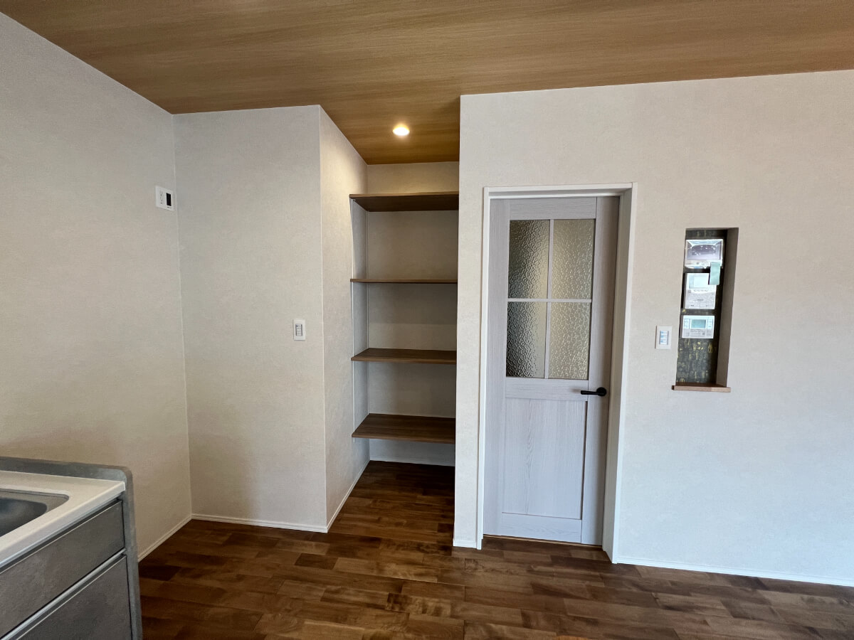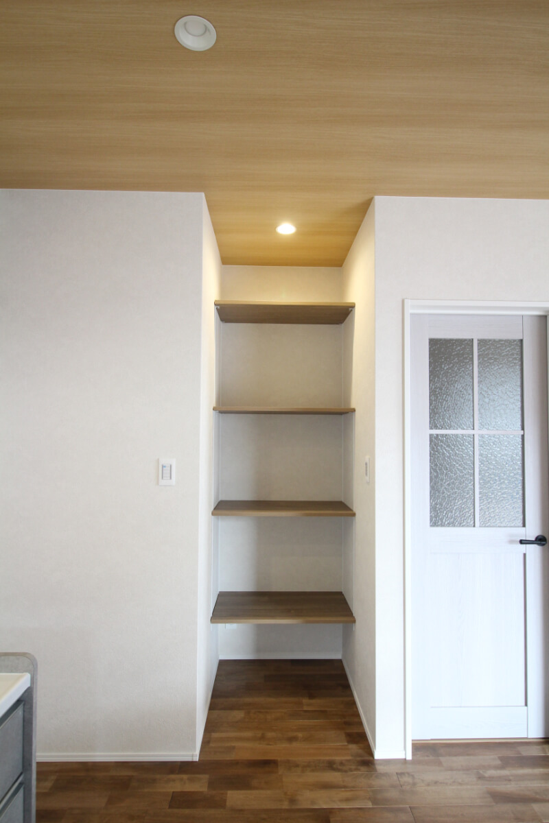 キッチンの両側にある収納スペースで、料理に必要なものをスッキリ収納できます。