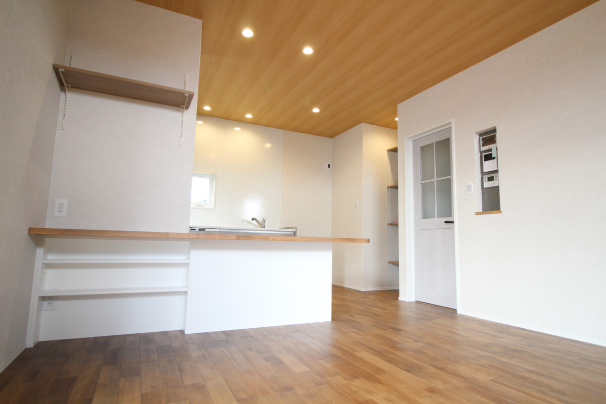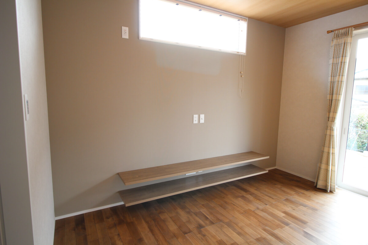 TVボードは壁に備え付けの造作棚。