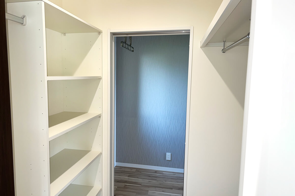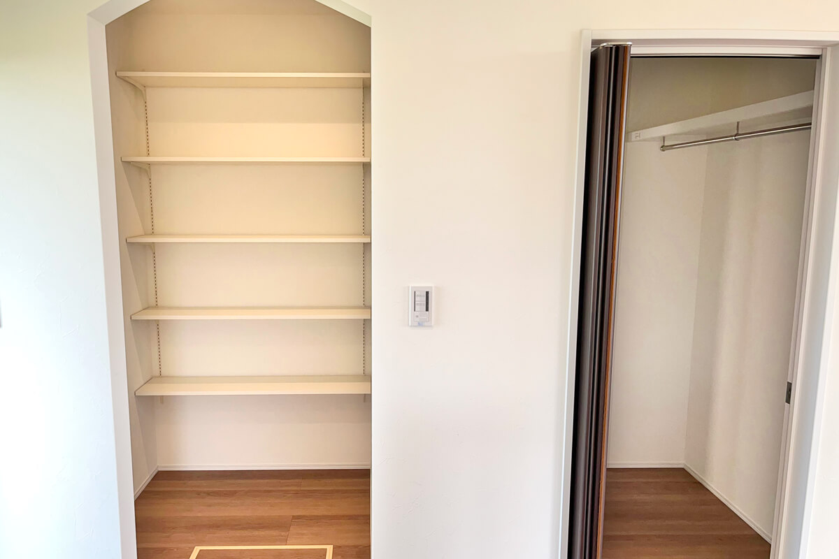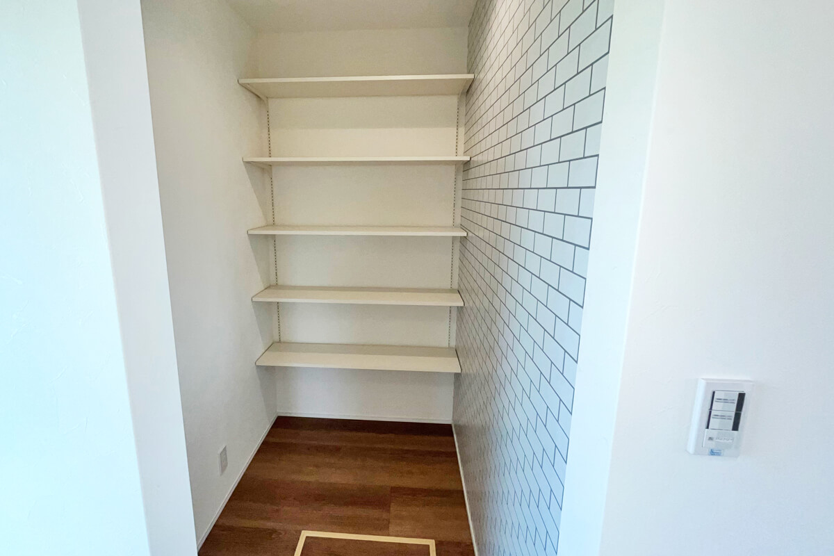 また、キッチン横には可動棚のついたパントリーもあるので、ストックしている食料の保存や収納に便利です。