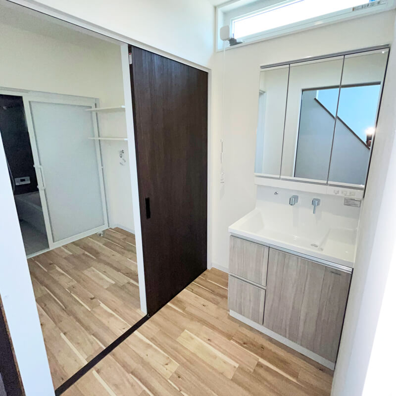 洗面・脱衣・ユーティリティが独立しているので「家族がお風呂に入っている間は洗面台が使えない…」