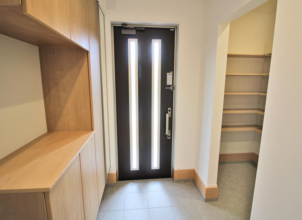 シューズクロークは、家族全員分の靴がラクラク収納できるサイズなので、靴が出しっ放しにならず、いつでもスッキリ。