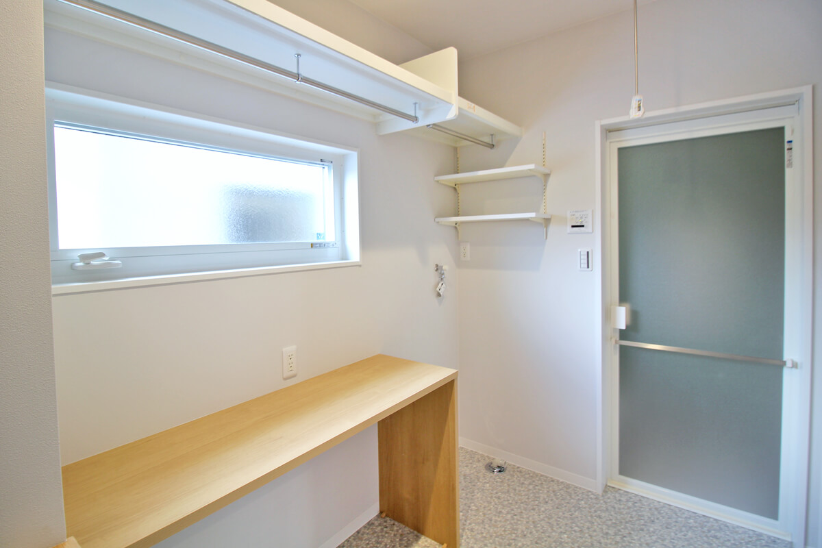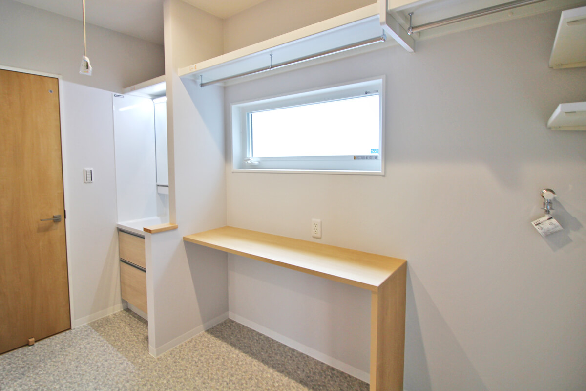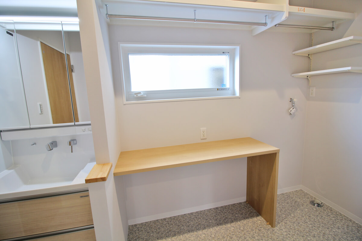 使い勝手のいい大きな作業台を設けることで、洗濯物を洗う・干す・たたむ・アイロンをかける、などがラクにできるので、作業効率があがります。