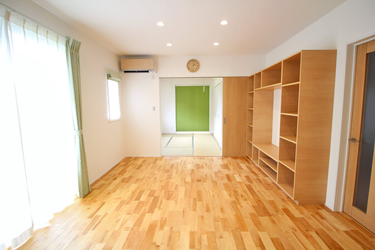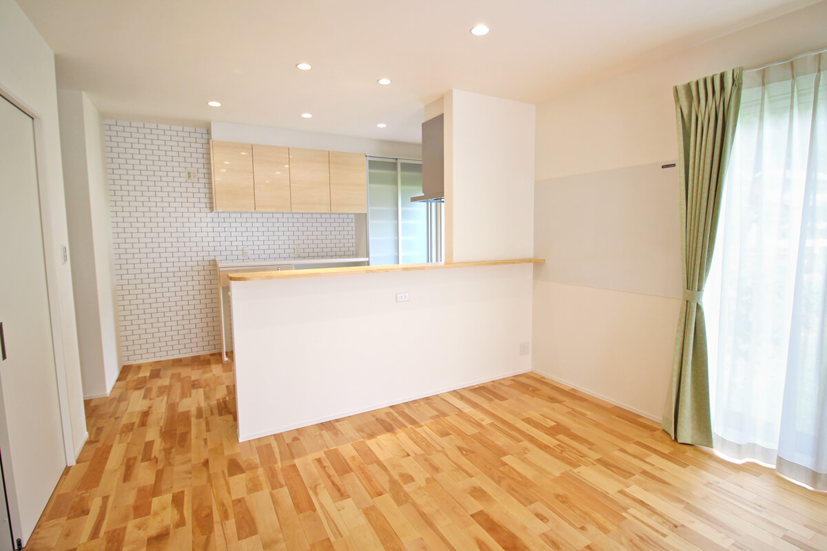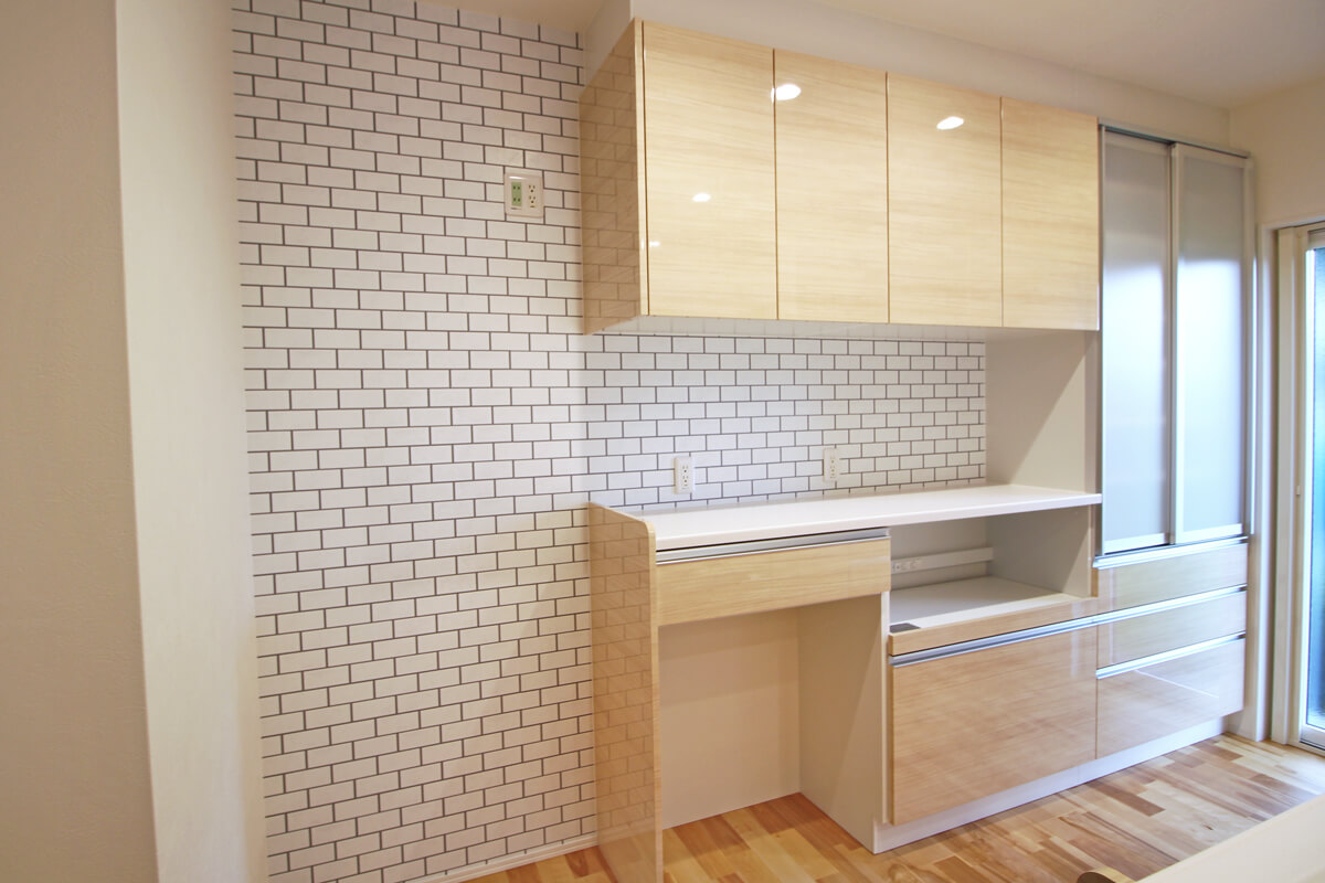 キッチンも木目のデザインにすることで、部屋全体に統一感が出ます。