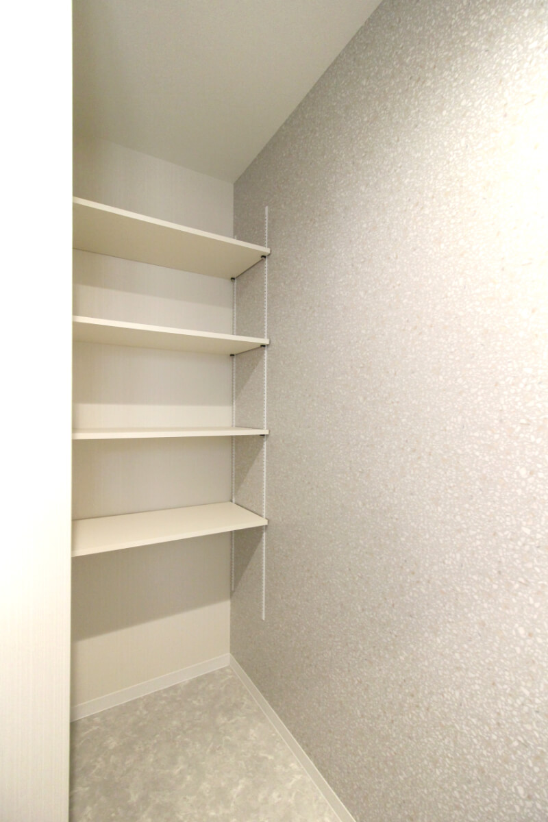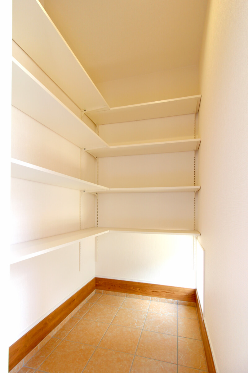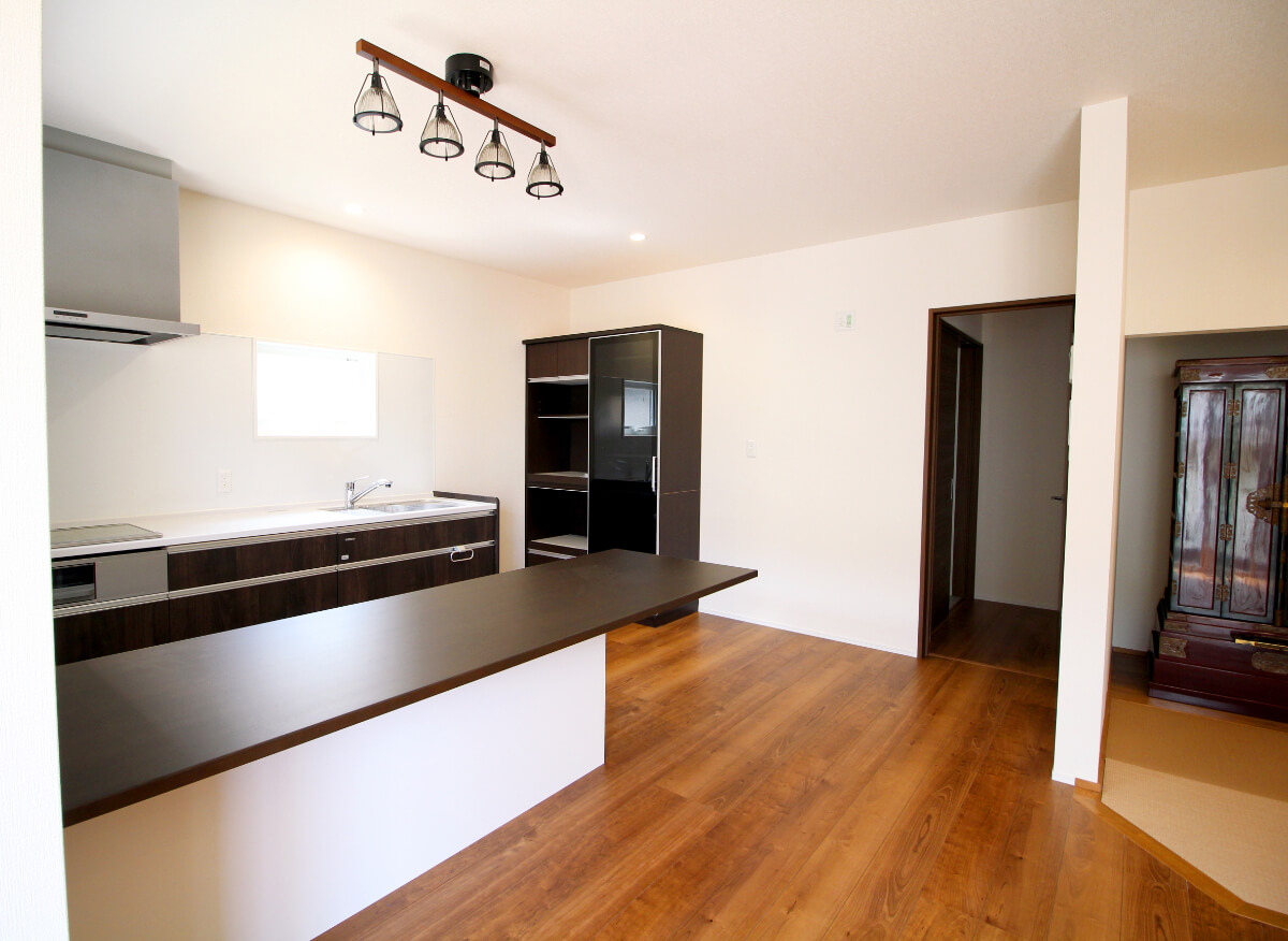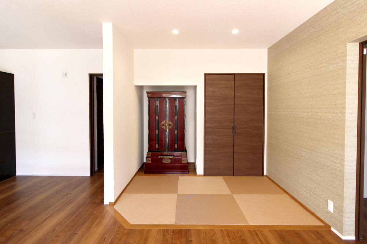 奥には、収納と仏壇スペースもあります。