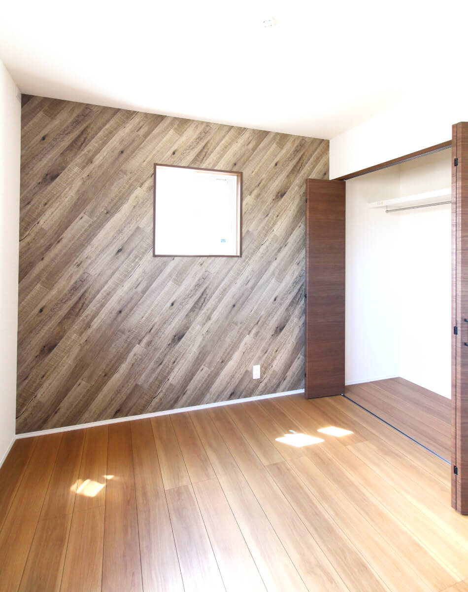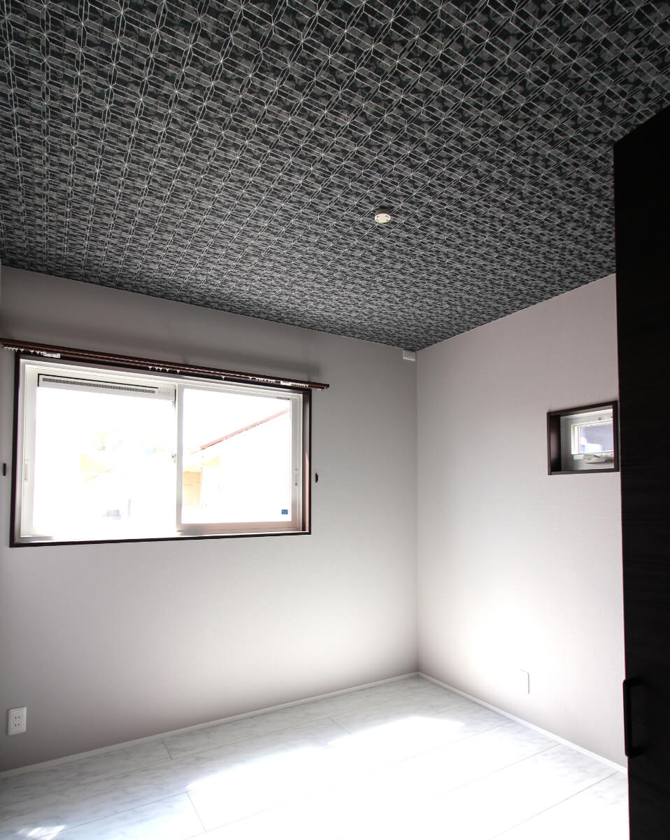 各居室の壁や天井にも、こだわりのアクセントクロスを使用し、おしゃれな仕上がりになりました。