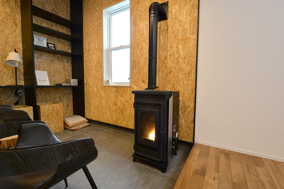 傍でお気に入りのチェアに座ってゆったり読書を楽しんだり、ペレットストーブを中心に家族団欒をしたり…そんな優しい生活空間が広がります。