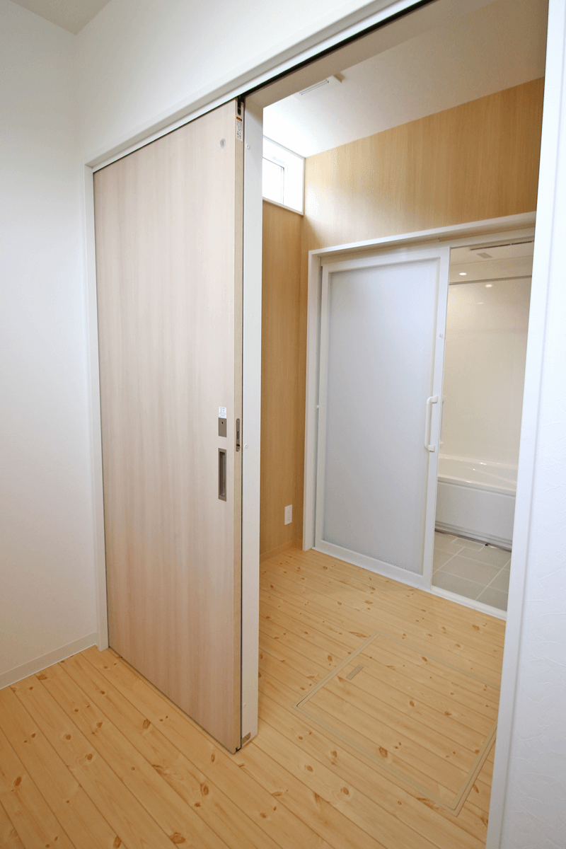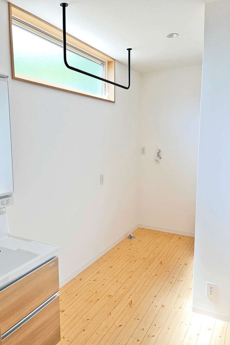広いランドリールームは室内干しもできるので、洗濯物が天気に左右されることなくできます。