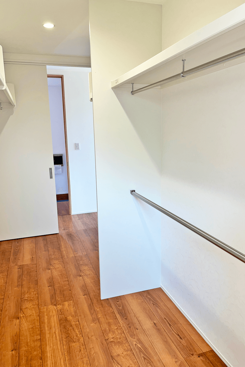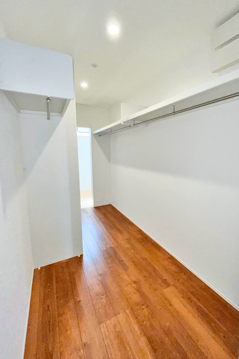 ランドリールームは広々としたウォークインクローゼットとつながっているので、洗濯→干す→片付けるの家事がラクラク♪