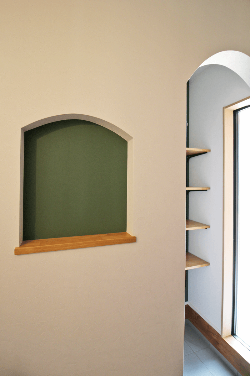 玄関ニッチには、雑貨やお花、季節の小物を飾ったり