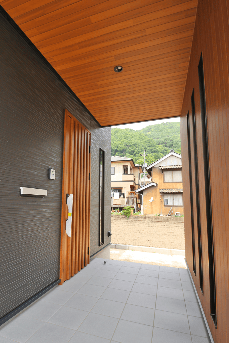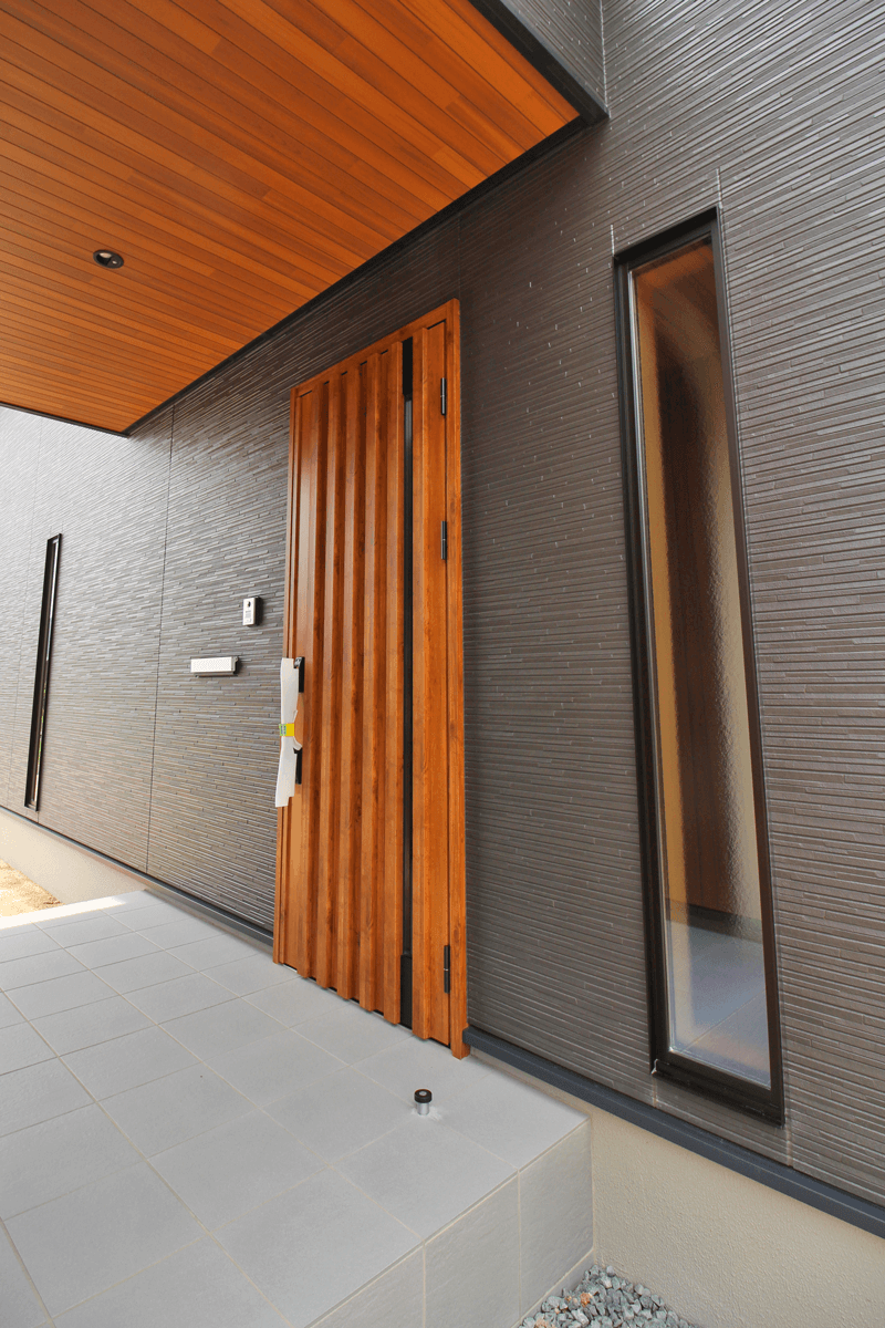 外観とは違う素材の壁で玄関の目隠しを設置することで、プライバシーを守りながら、外観にもアクセントが加えられ一気にオシャレな印象になります。