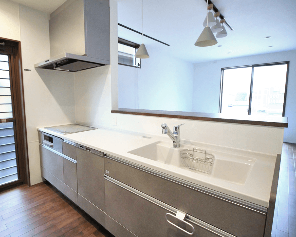 キッチンはシンプルで使いやすく、作業台もしっかりとした広さがあるので、お料理がしやすくなっています。