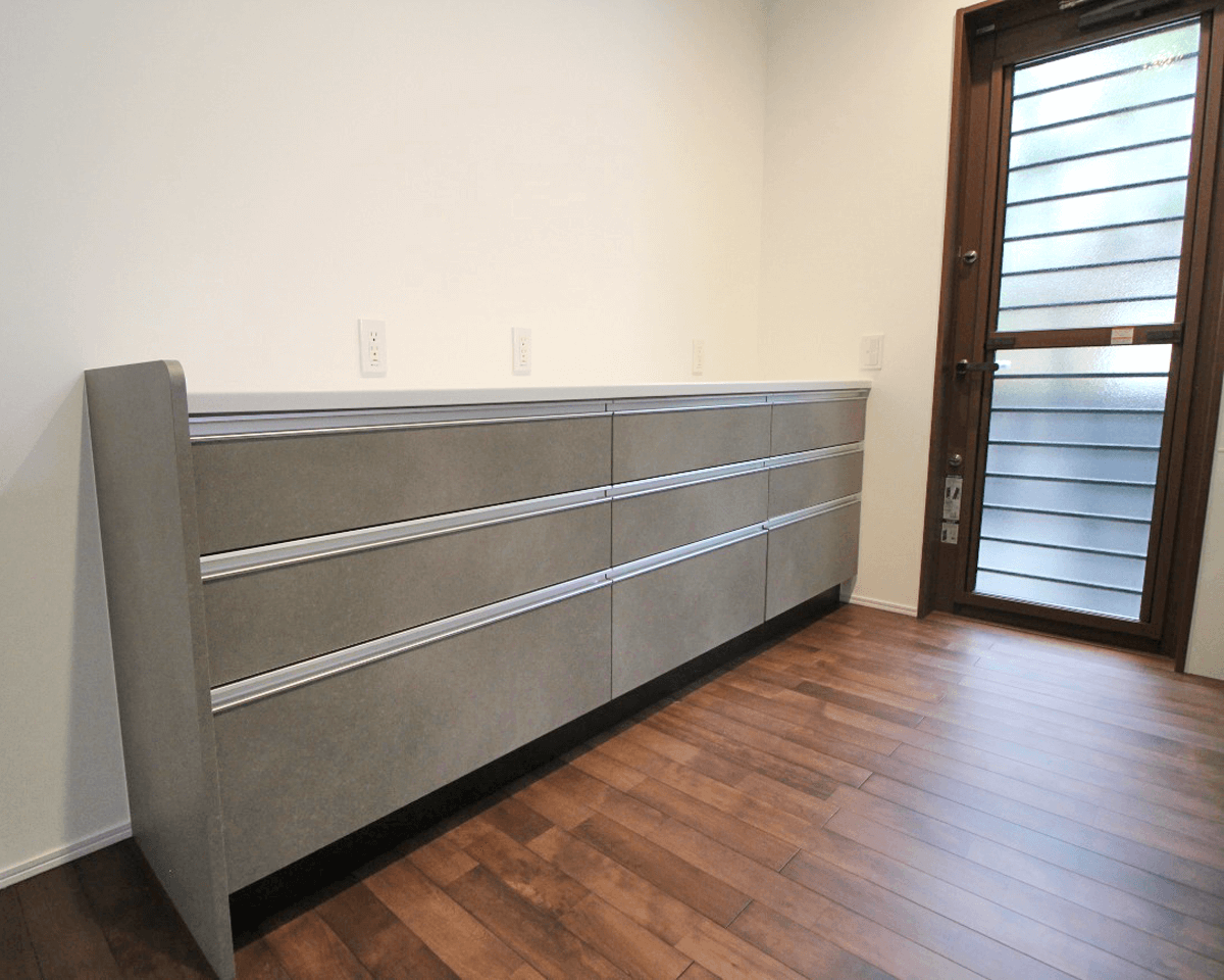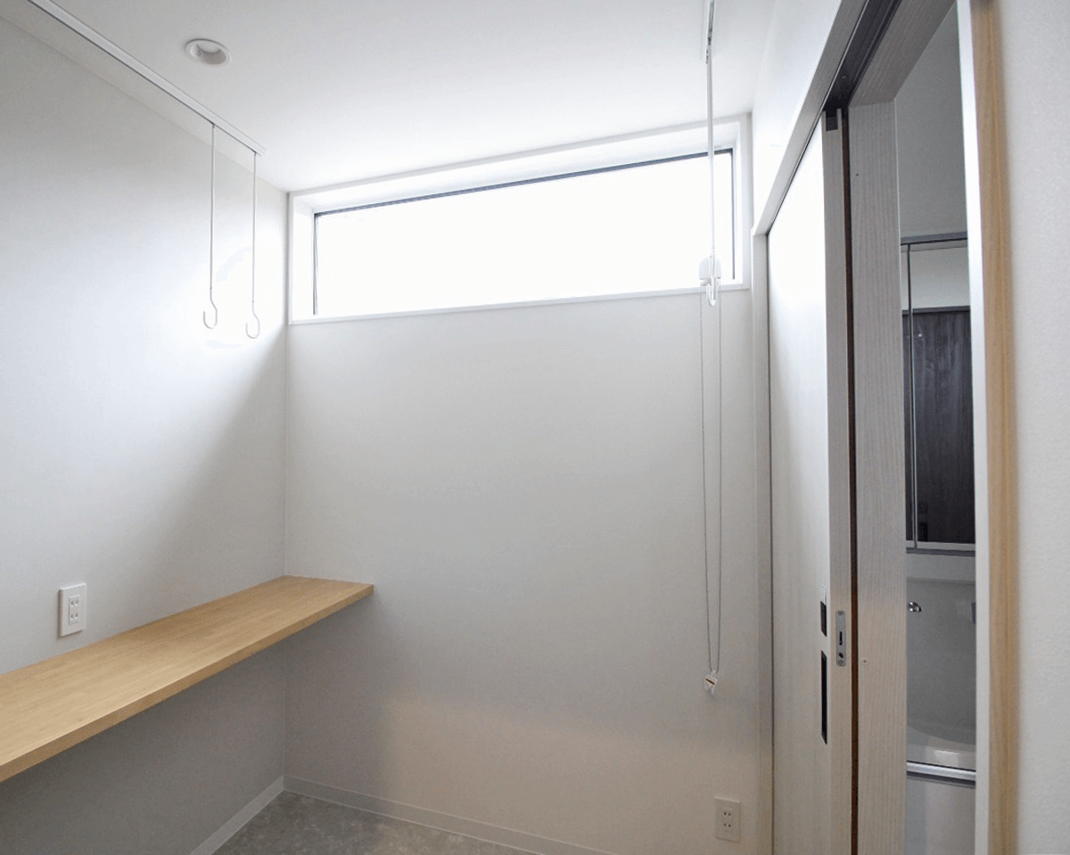 このお家では、ランドリールームの隣に収納スペースがあるので、洗濯→たたむ→収納の流れがスムーズ♪