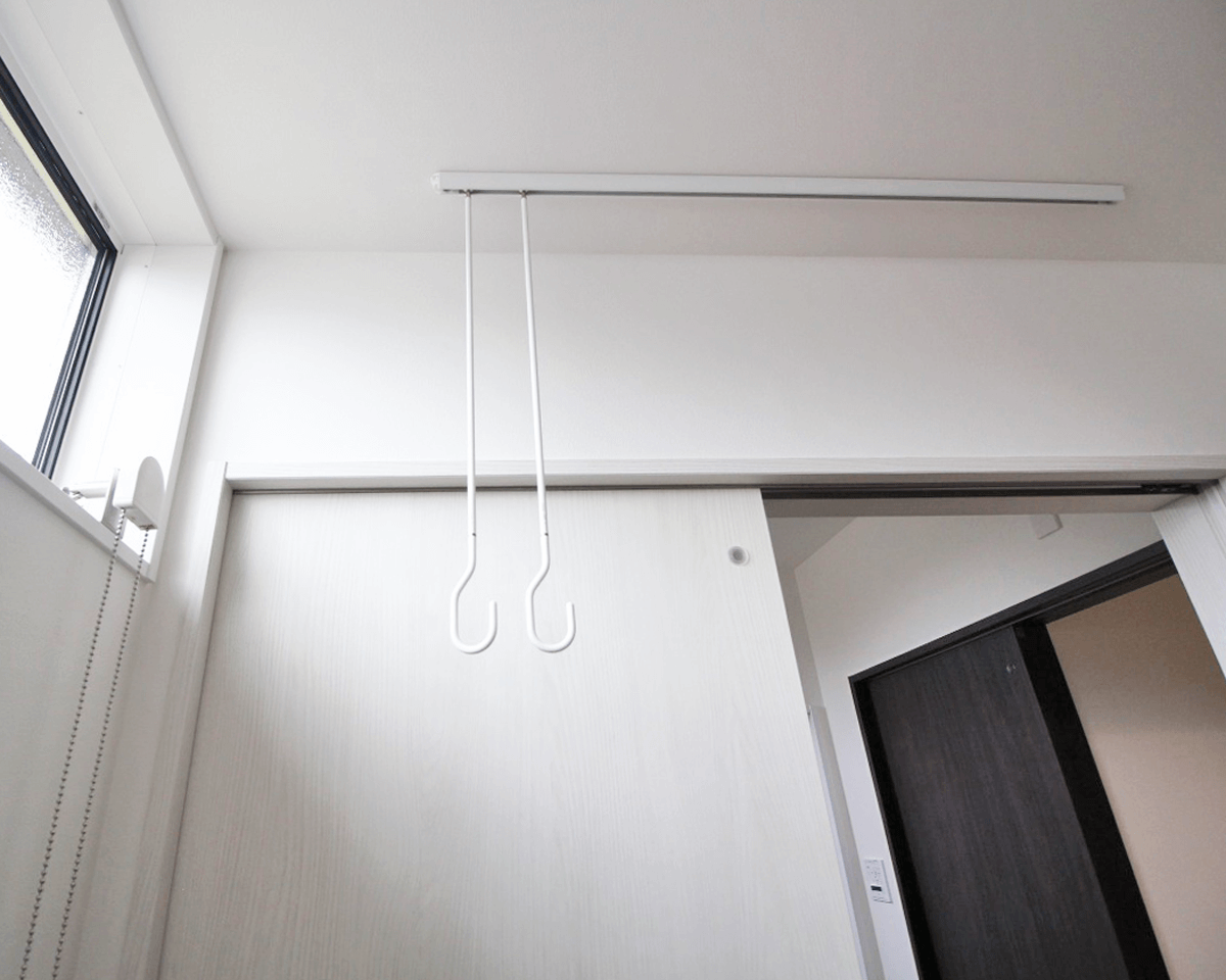 部屋干し用のポールのあるので、季節・天気に左右されることなく洗濯ができます。