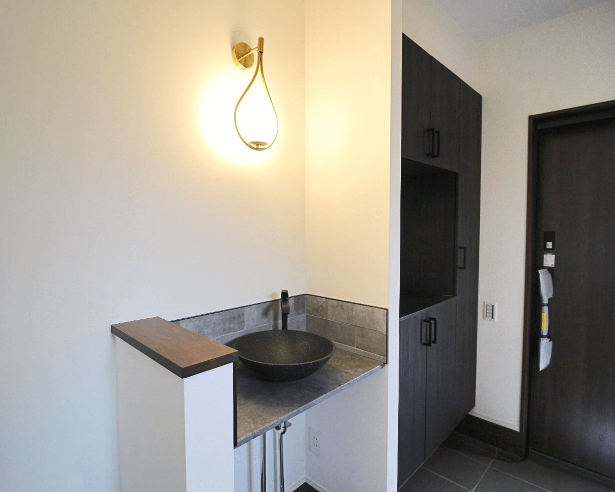 また、玄関を入ってすぐの所に手洗い場を設け、帰宅後の手洗い・うがいがスムーズにできるようにしています。