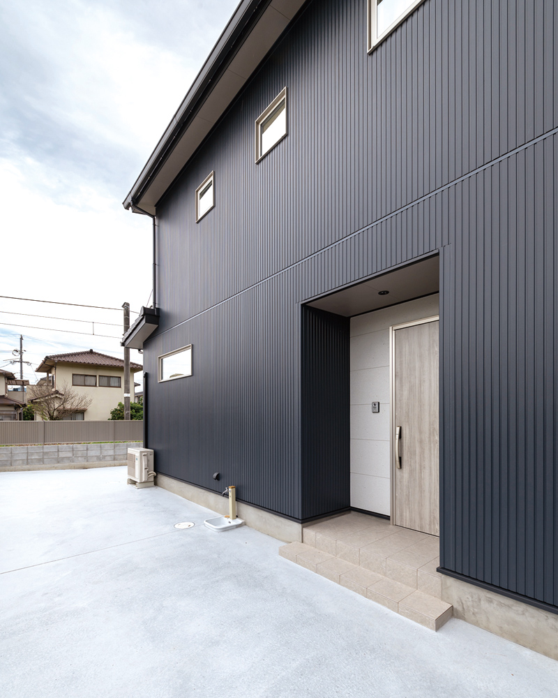 ひときわ目を引くのが、黒を基調とした外壁。シンプルながら重厚感があり、街並みに映える印象的な佇まいです。