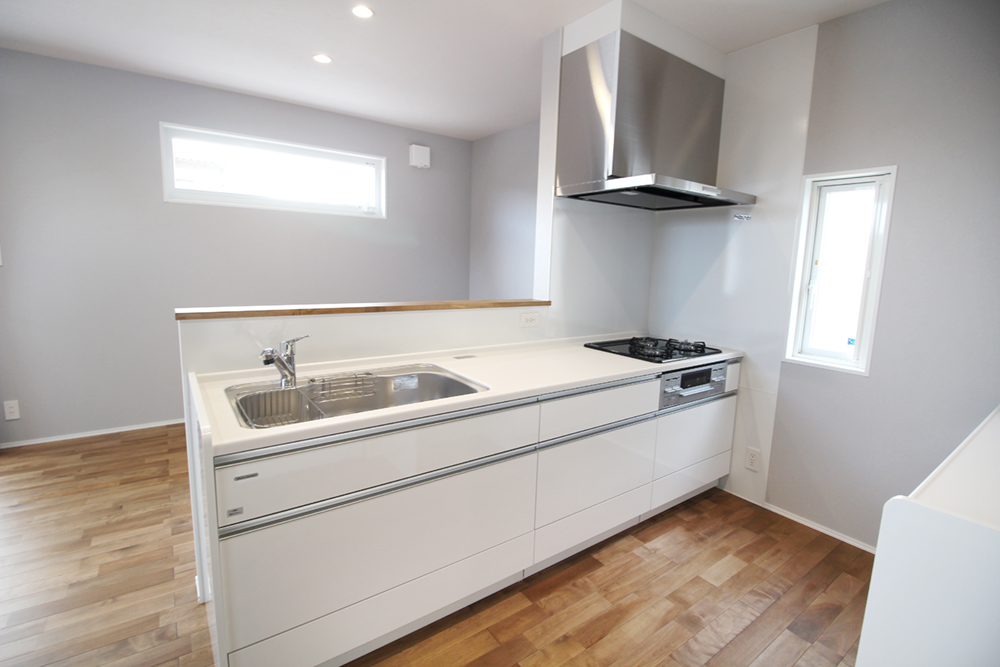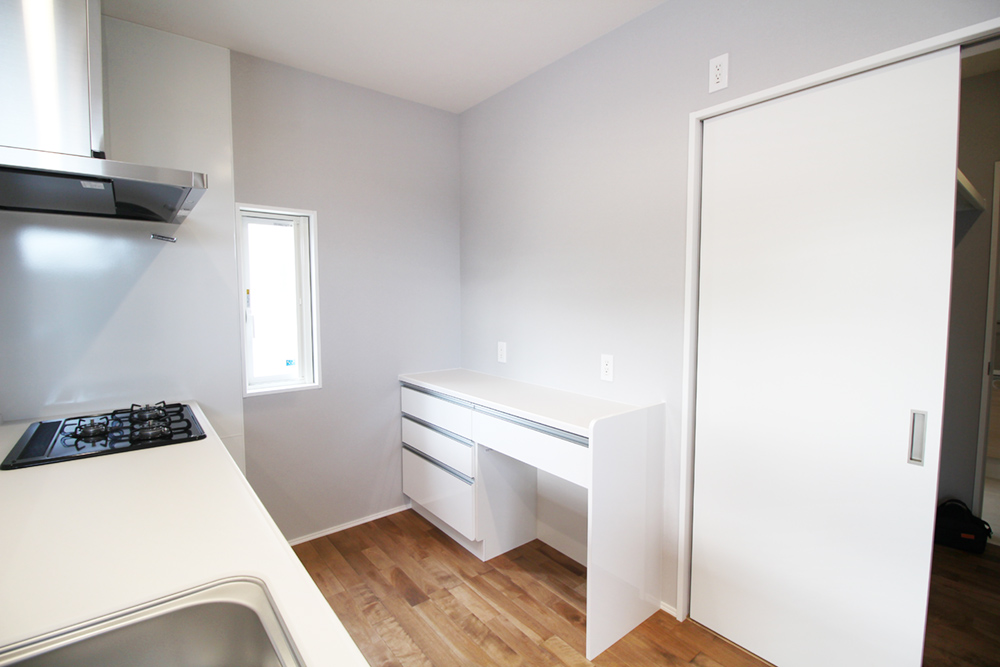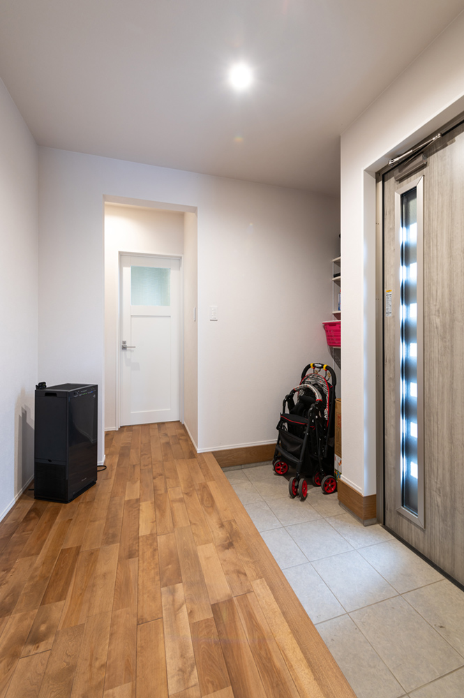 こちらの住まいは、玄関から入ってそのまま洗面所→ファミリークローゼット→キッチンへと回遊できる動線設計に。