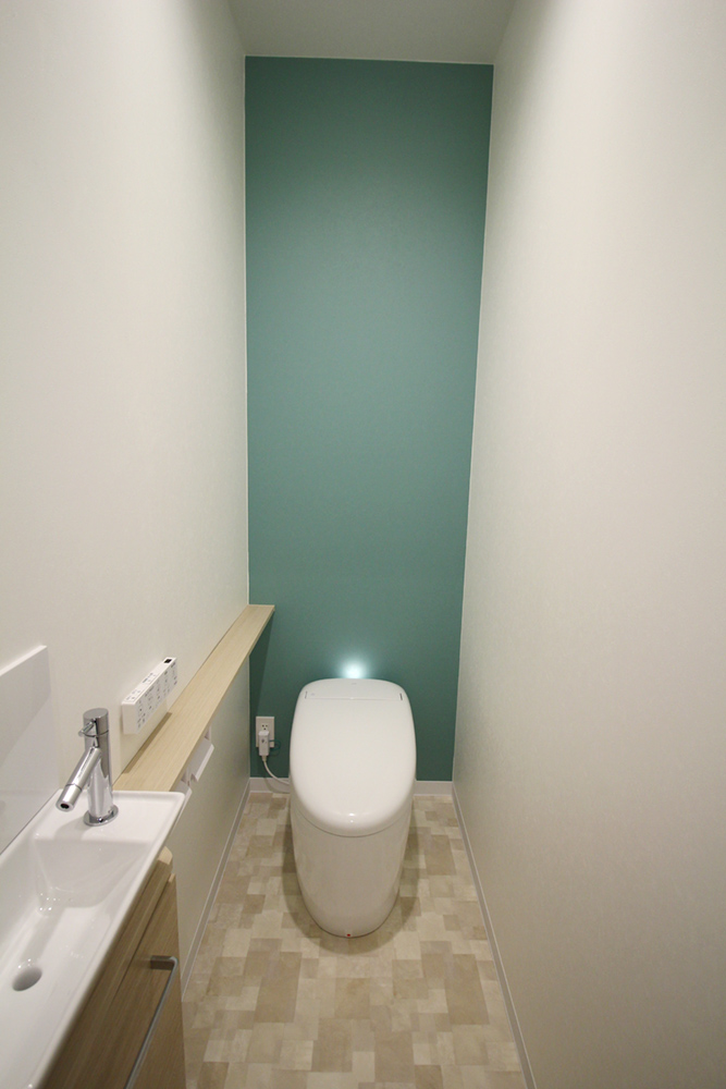 1階のトイレには、空間に馴染むナチュラルな手洗いカウンターを設置。